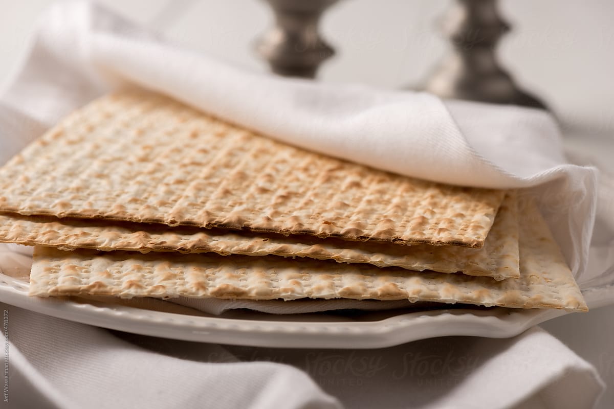 Matzah on the table. On the table is also 3 pieces of matzah which is wrapped in a cloth. Matzah is unleaven bread. Remember now Passover is the start of the Feast of Unleavened Bread which continues from Nisan 15th to Nisan 22nd (7 days)