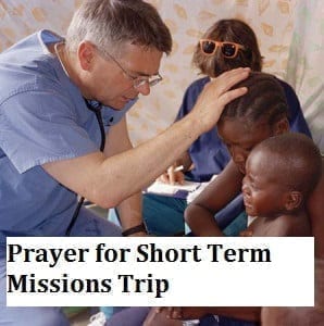 The person going on this short term mission trip must be praying everyday through the duration of this mission. This is important for them to stay connected with God and here instructions from Him as they go along.