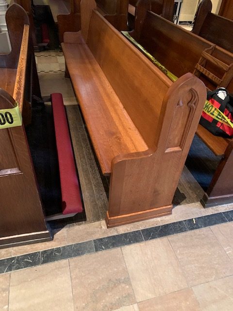 attend a church like this now, there are wooden pews, then those bars that come down with the red padding for you to kneel in prayer.
