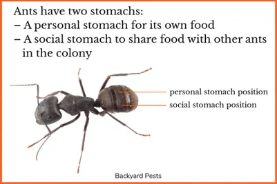 When the ant is storing food it has it’s own personal stomach. Somebody say “That’s for me!” and it has another stomach that it uses to share with others.
