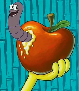 I’m sure you’ve seen some variation of this while you were growing up in school. Well, I saw a worm come out of the apple and then there were many worms busting out all over the apple to the point where there was hardly any sign of the apple with all those worms over it.